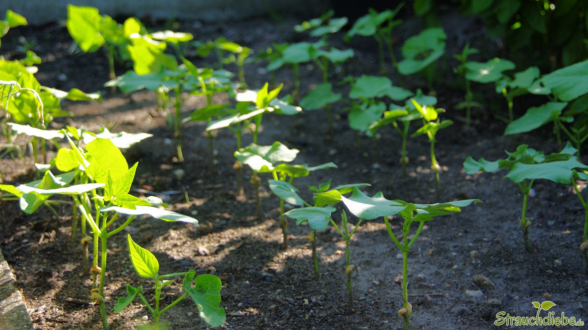 Die Erdbeeren sind so ziemlich durch. Die Erbsen haben schon schöne Schoten gebildet die nur noch dick werden müssen und auch die neu gesäten Buschbohnen sind größtenteils aus der Erde.
